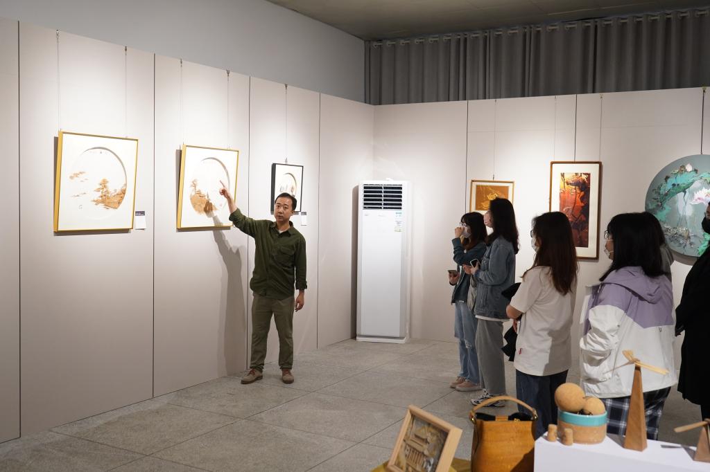 在参观工艺之美作品展过程中,讲解老师生动地介绍了各个艺术作品巧妙设计背后所蕴含的创作者的艺术精神。尤其是红色题材作品,结合古今把红色精神和中华传统文化精神紧密结合,展现出了绚丽、喷薄与壮美,更是让参观者赞叹。随后,同学们还参观了玉石雕刻室、漆艺工作室、陶艺工作室等。