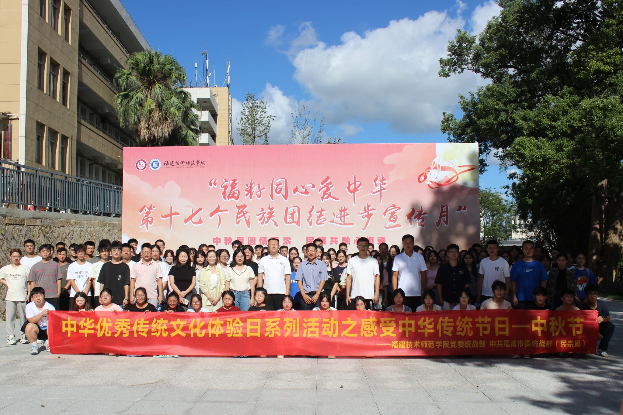 为深入贯彻落实习近平总书记关于加强和改进民族工作的重要思想,聚焦铸牢中华民族共同体意识主线,促进民族团结进步,推动校地同心携手铸牢中华民族共同体意识,9月13日下午,由我校党委统战部与福清市委统战部(民宗局)主办,艺术与传媒学院承办的“福籽同心爱中华·第十七个民族团结进步宣传月”活动暨中华优秀传统文化体验日活动在五马山校区赫曦广场举行。校地相关部门负责人、各学院师生代表等500余人参与此次活动。