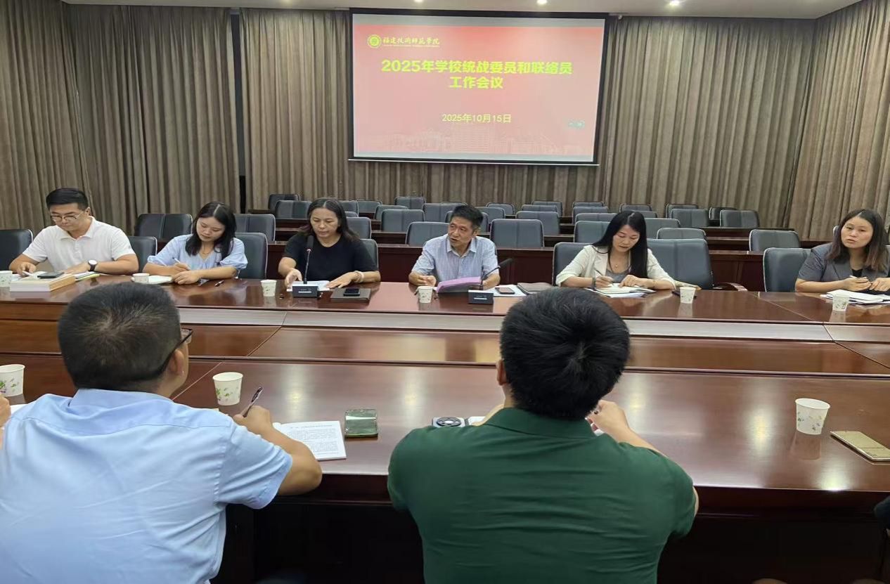 10月15日下午,学校统战委员和联络员工作会议在华贞学术报告厅召开,会议以“明责、强能、笃行”为主题,旨在明确工作职责、强化能力建设、笃行实干担当,全力推动学校统战工作迈上新台阶。各二级党组织统战委员和联络员、统战部全体人员参加会议。郭部长主持会议。